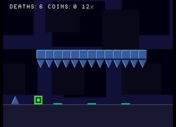This demo contains 4 playable levels, each with its own music track, color theme, and difficulty curve. The cube mechanics you know are all here: jump pads, orbs, gravity portals, and speed changes — rebuilt from scratch for 1994 hardware.