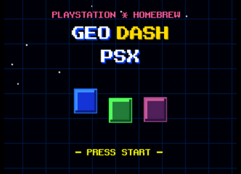 GeoDash PSX is a Geometry Dash inspired rhythm platformer written in C and running natively on the original Sony PlayStation.